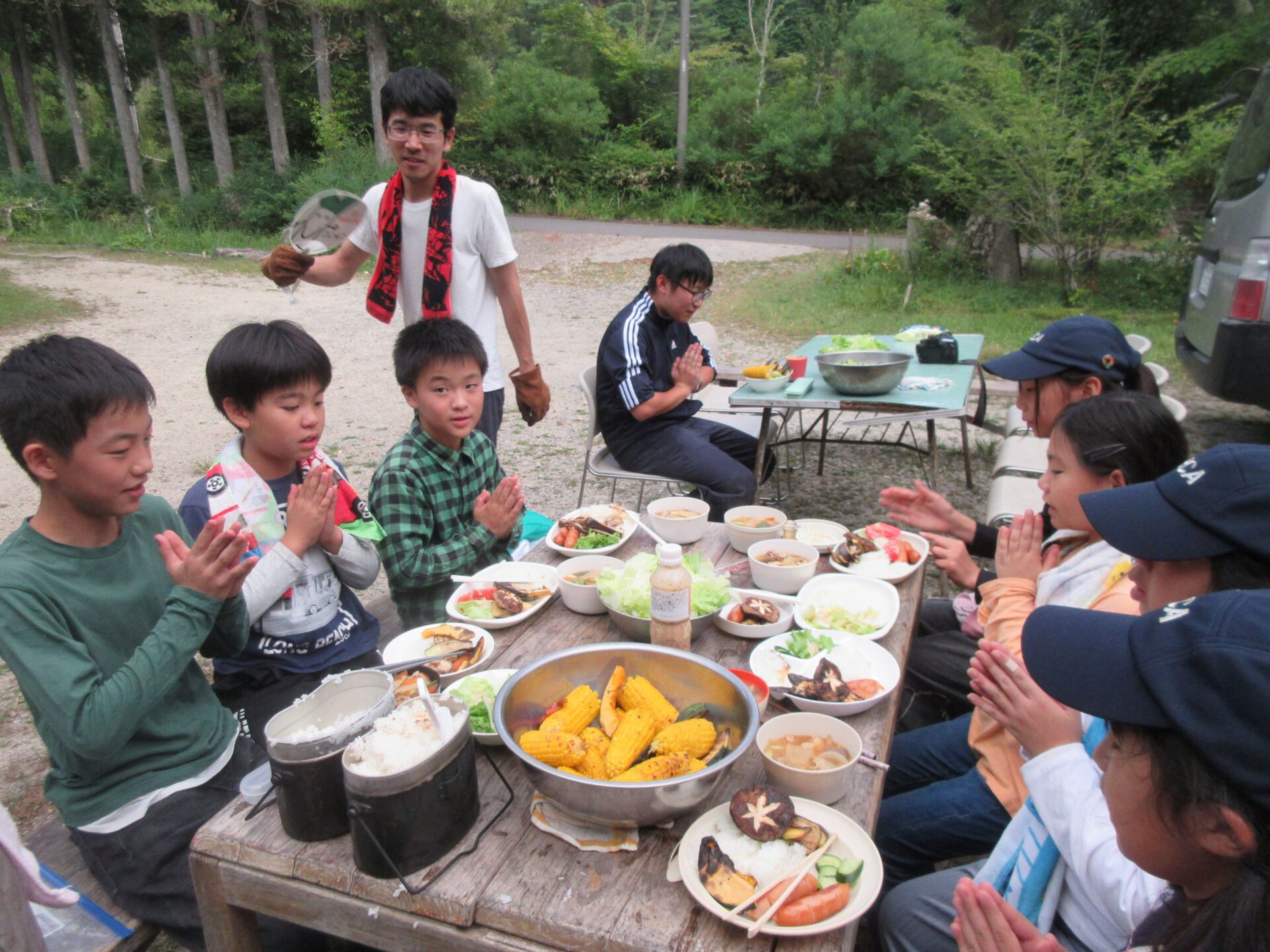 夕食は自分たちで薪を割って火をおこし、野菜を切って作った豚汁とご飯。自分たちで苦労して作った夕食の味はどうだったかな?